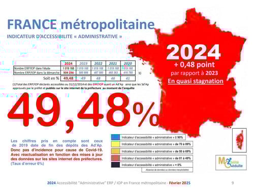 - moins de 20 % des travaux de mise en accessibilité des ERP publics sont réalisés (environ 10 % en 2010).