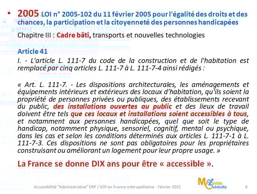 de la voirie et des espaces publics, des Etablissements recevant du public, etc.?