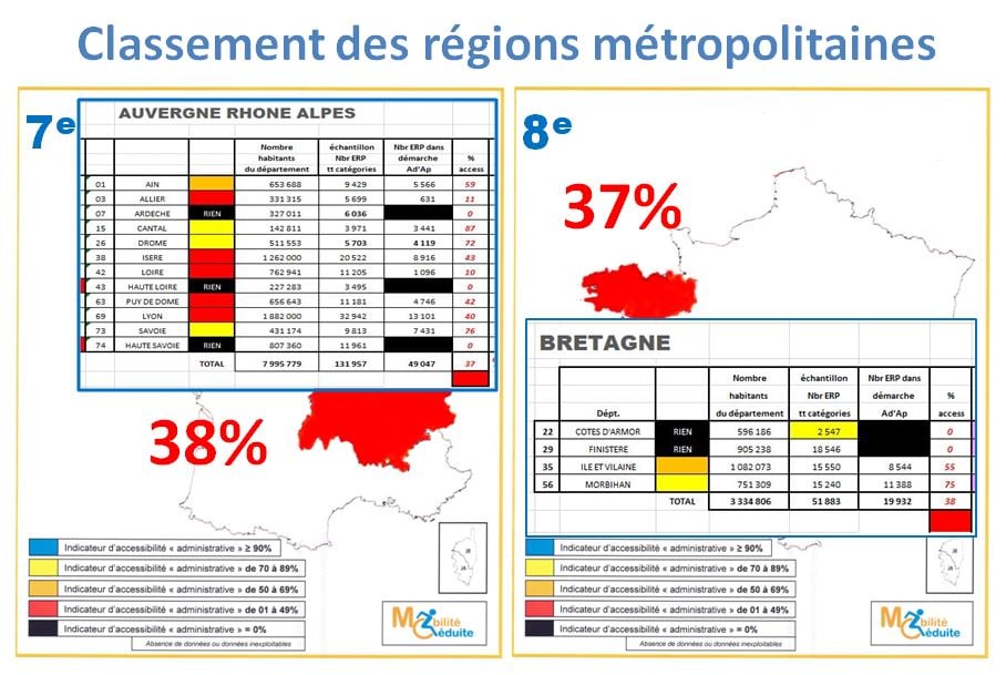Ci-dessus et dessous Notre Indicateur national d'accessibilité "Administrative" France métropolitaine